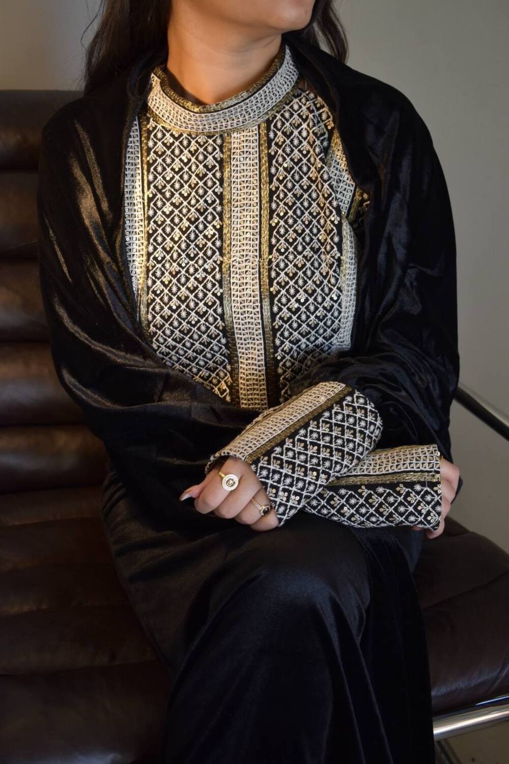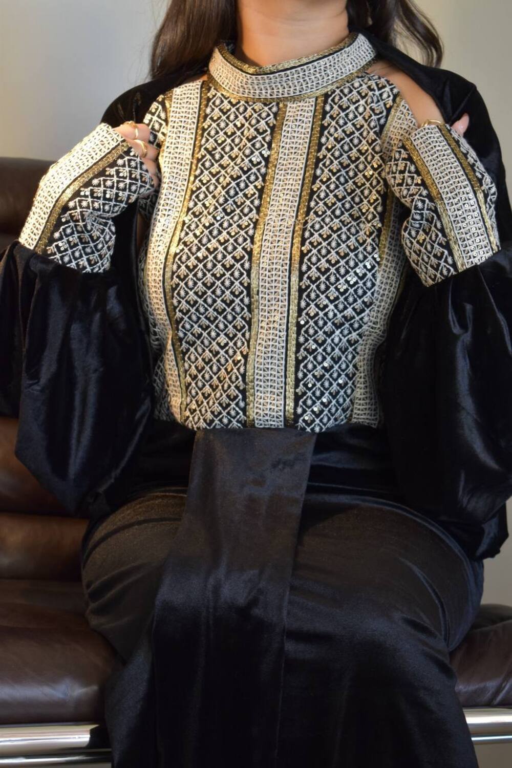 عباية تتكون من فستان وكيب والخام مخمل وخام شك