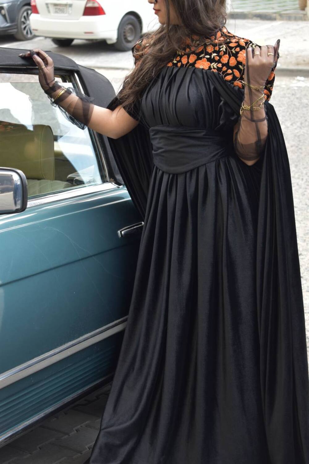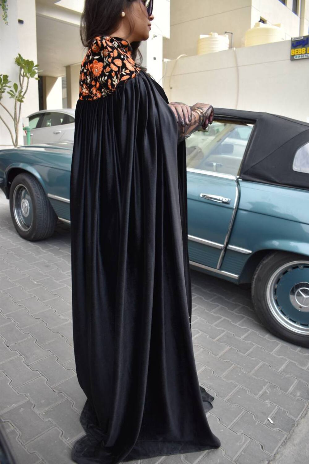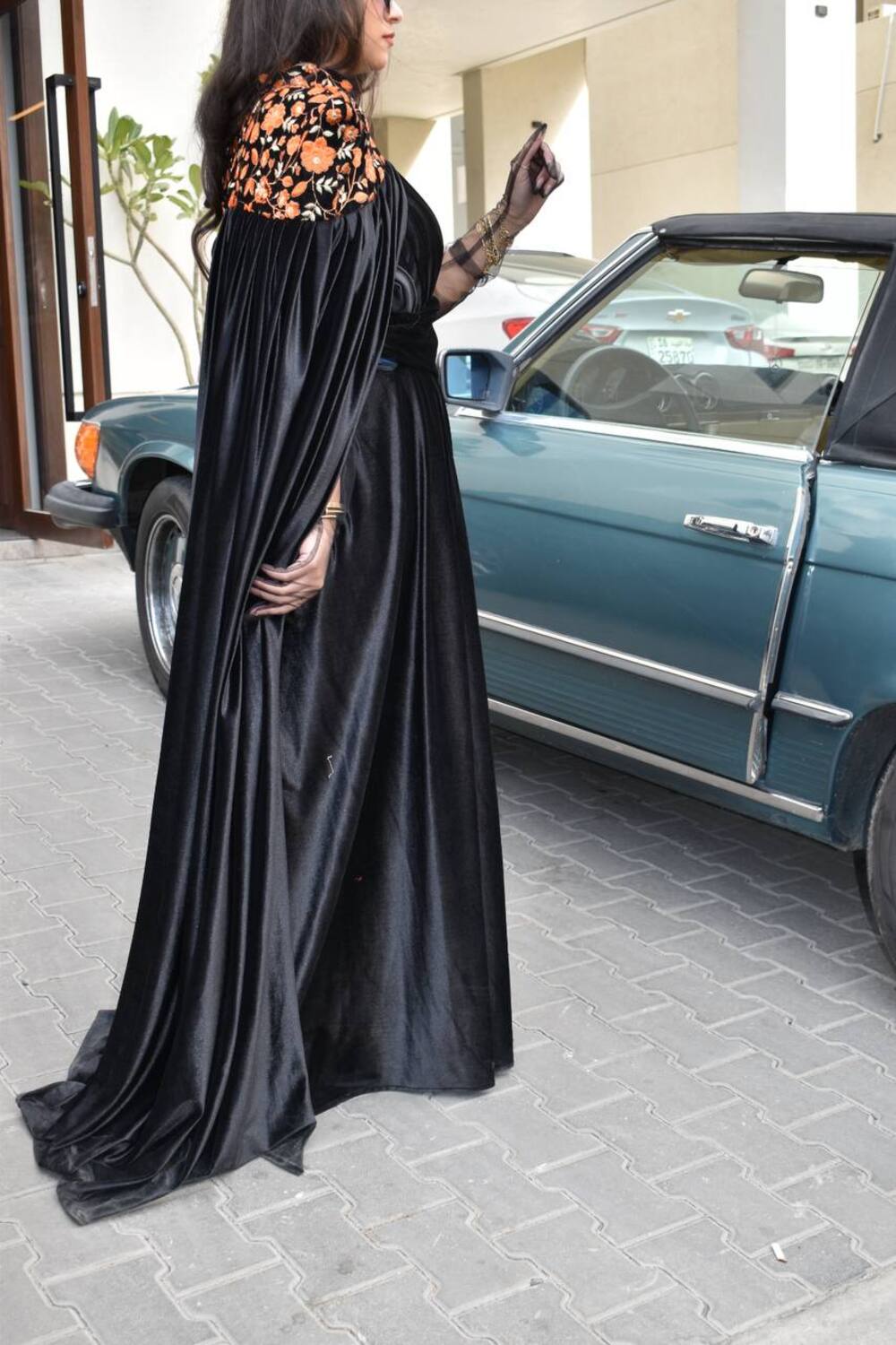 … الخام مخمل وفري سايز وتتكون من ثلاث قطع العباية والقافز والحزام