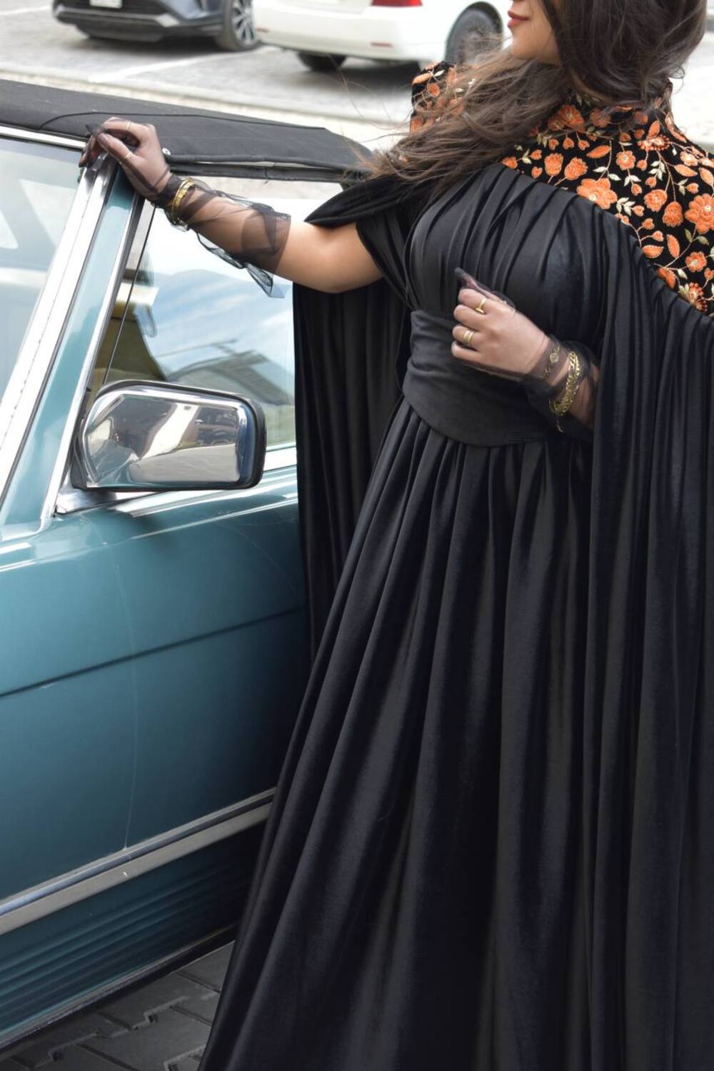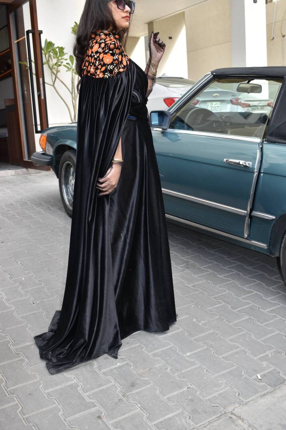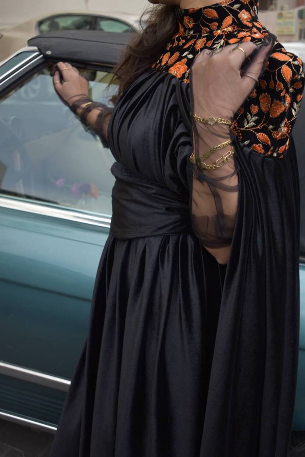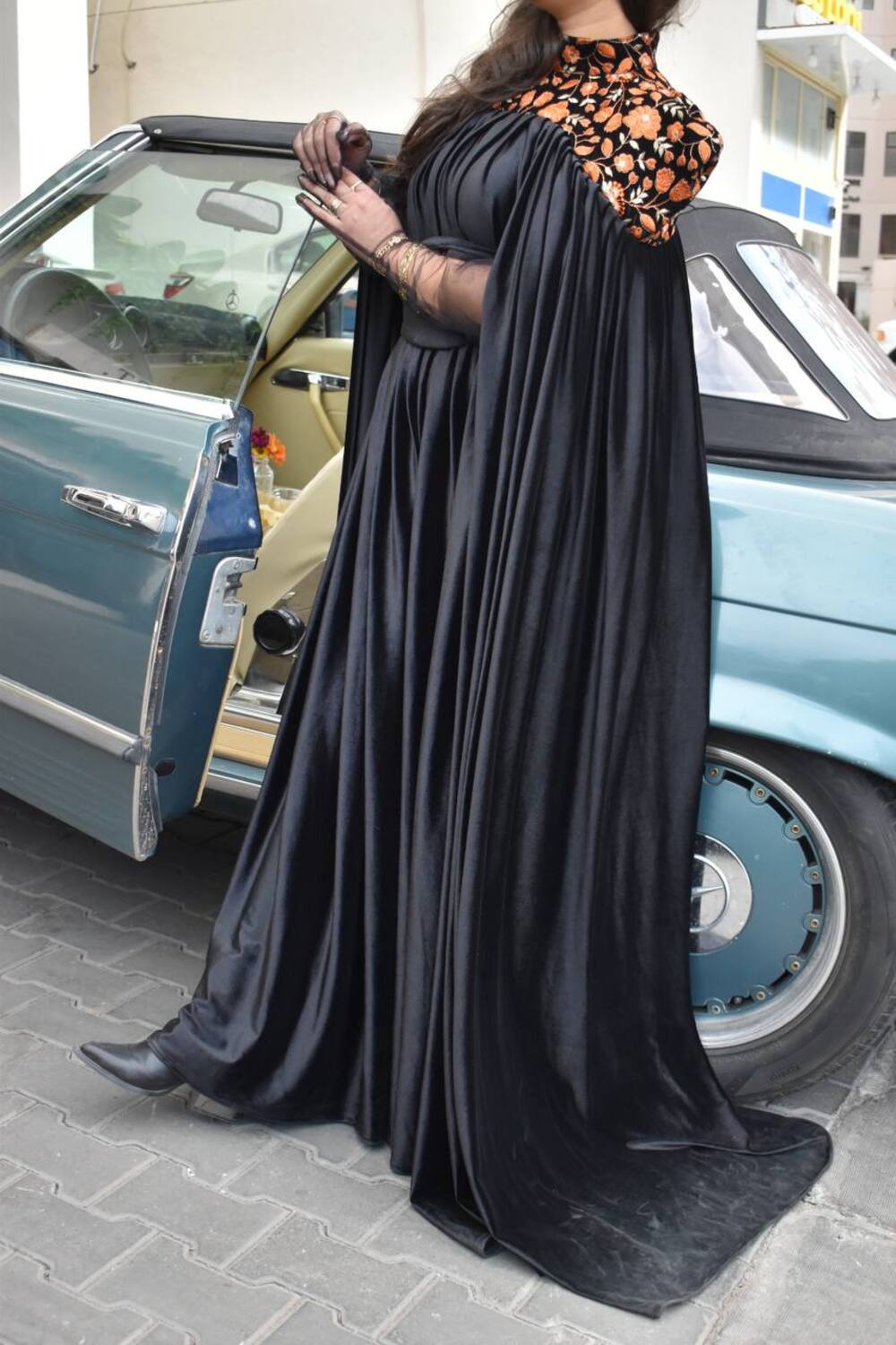 … الخام مخمل وفري سايز وتتكون من ثلاث قطع العباية والقافز والحزام