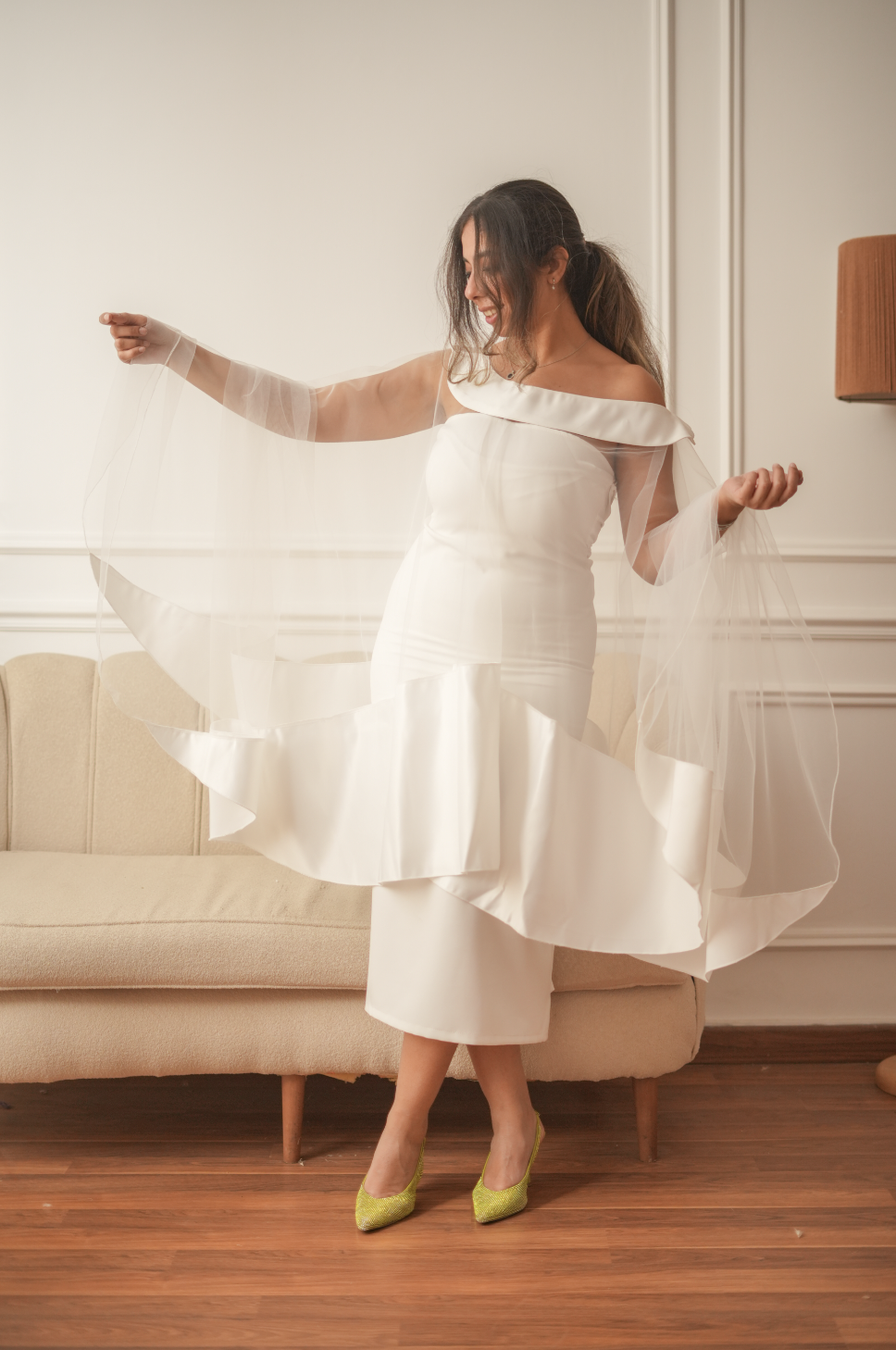 عباية لؤلؤة فستان من الكريب الايطالي وكيب من التل والميكادو الخاص فري سايز